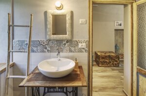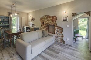 L'appartamento "Bambù" si trova al piano terra ed è composto dalla zona giorno con angolo cottura e divano letto a due piazze, piccola sala lettura, bagno e grande camera matrimoniale. Dispone di un ampio portico che si affaccia direttamente sul grande parco verde. E' caratterizzato dalla presenza di archi e scorci di parete in pietra e mattoni. L'arredamento è costituito da mobili e porte in legno che abbiamo personalmente restaurato.